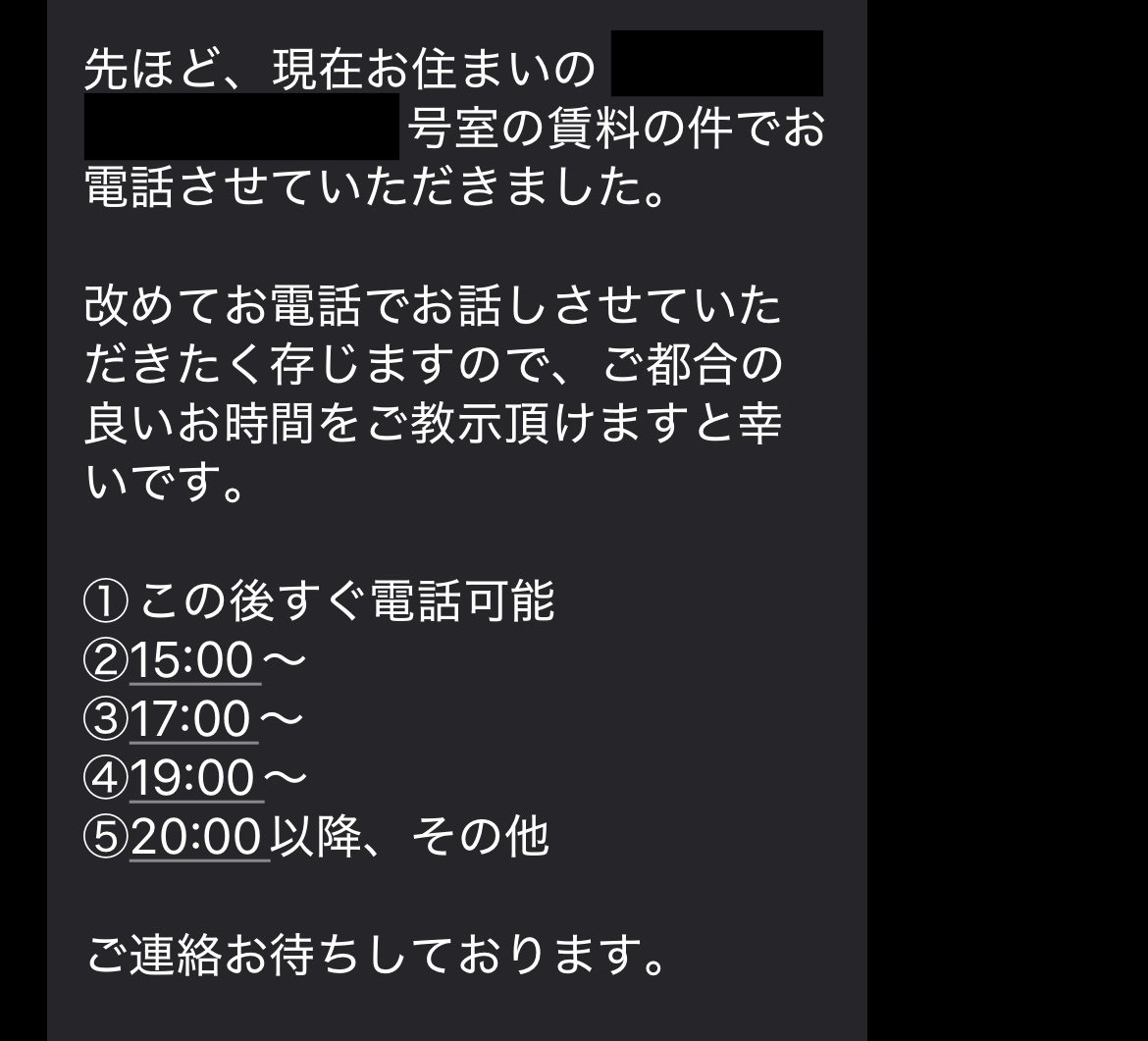 SMSに返信をして15分後くらいに管理会社の担当者から連絡があった。